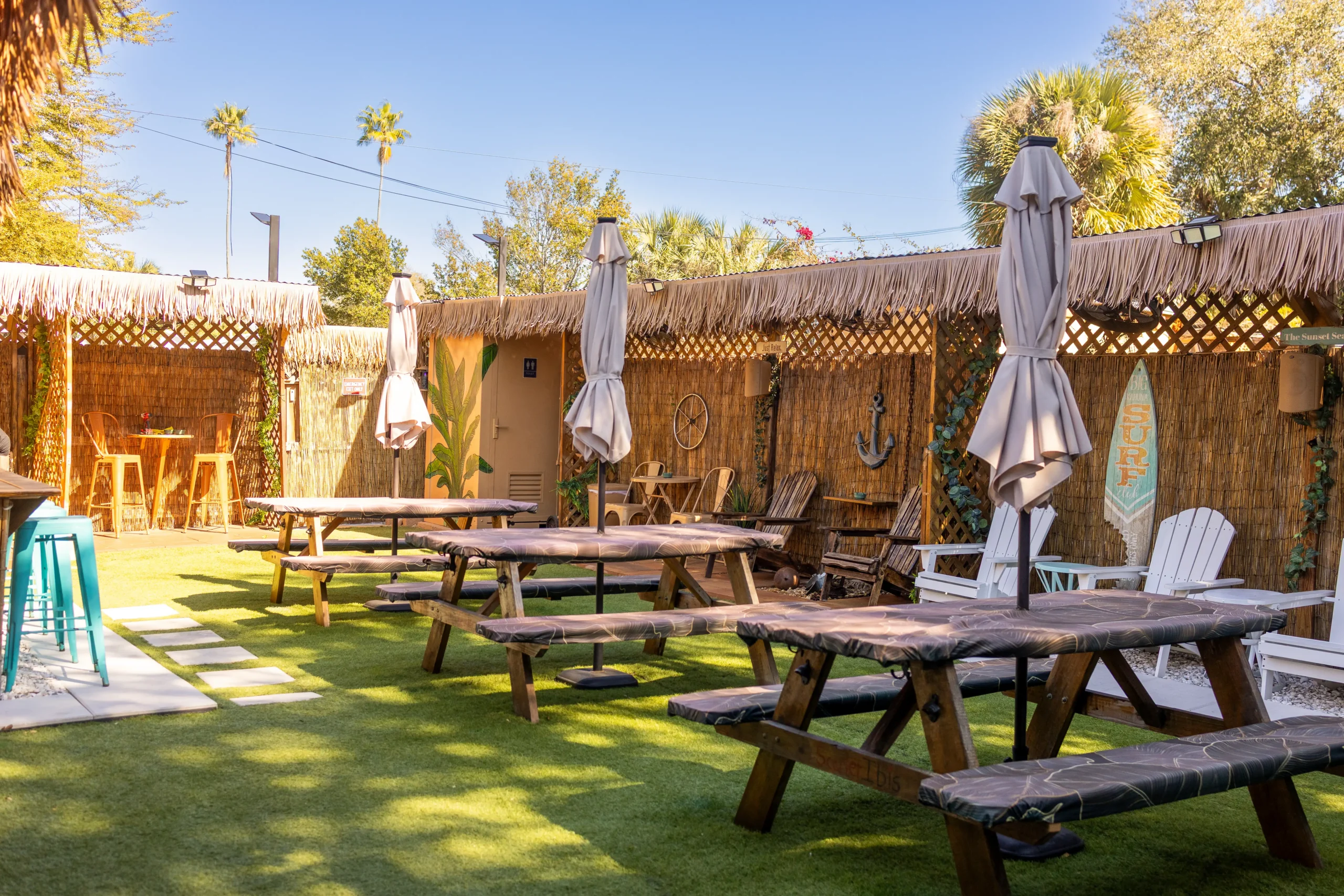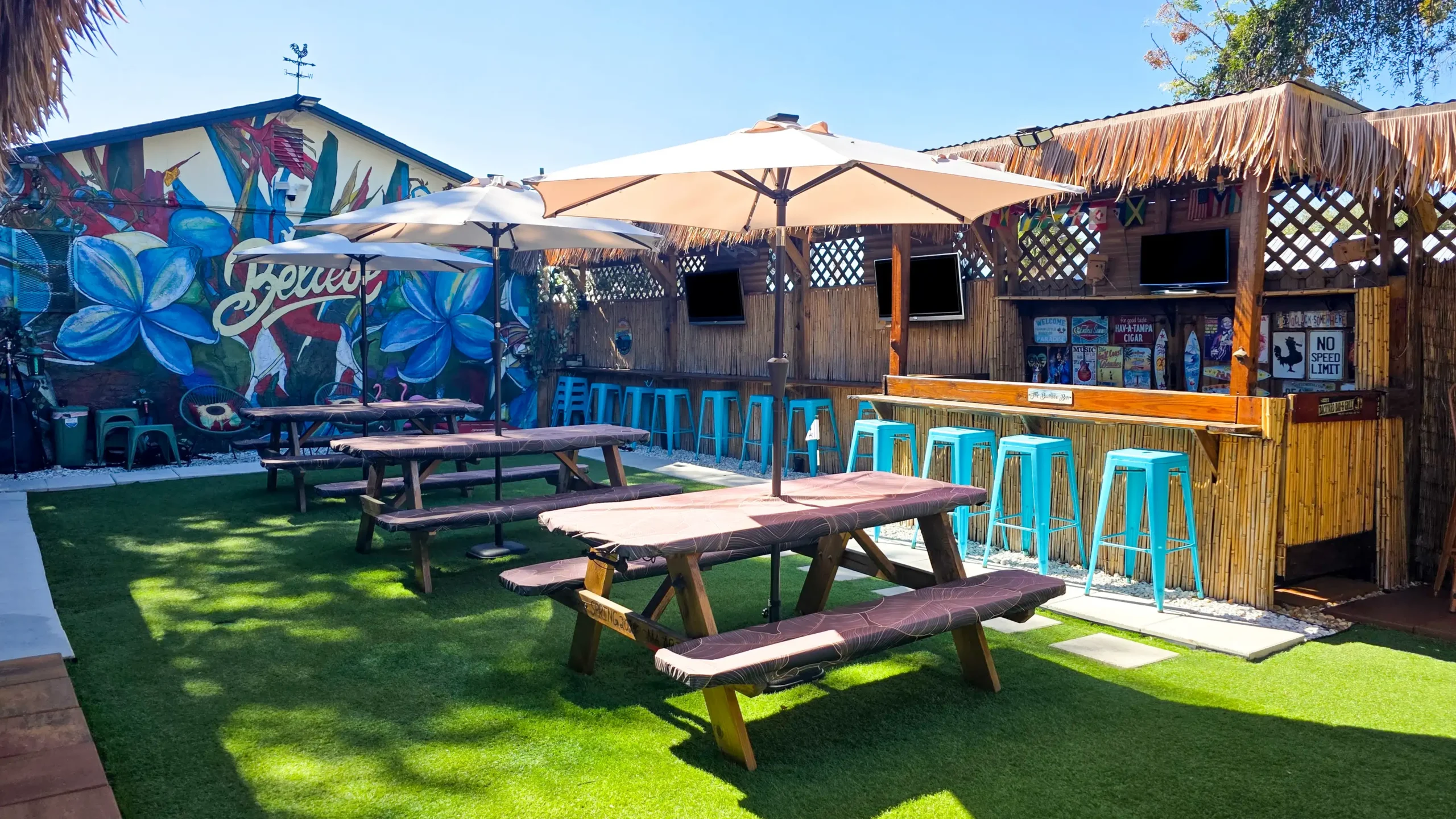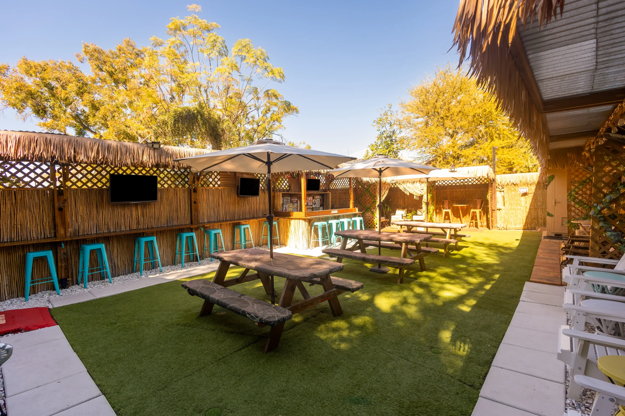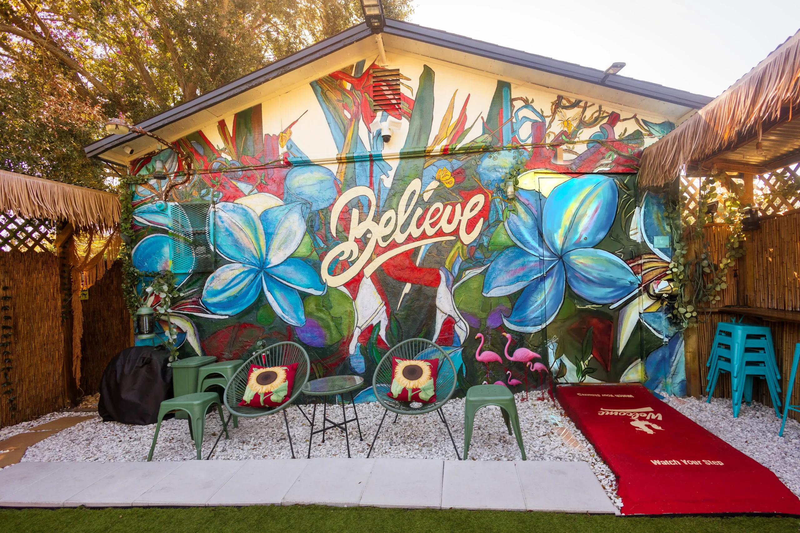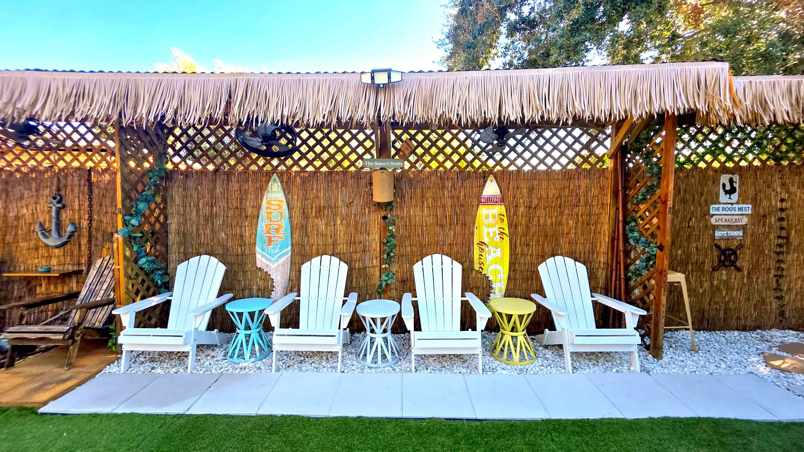 The Roos Nest Backyard Hangout at Fosters Barber Shop in Tampa provides a relaxed outdoor space for patrons to unwind, socialize, and enjoy the community vibe after a fresh cut and beyond.